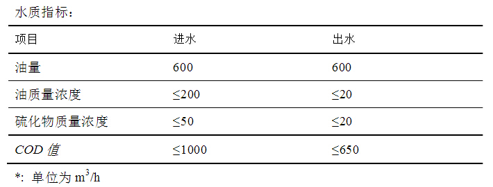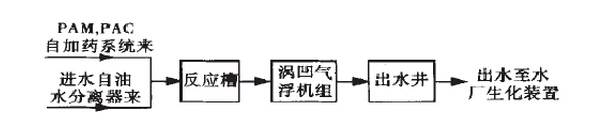 改造后的工藝流程采用2組渦凹?xì)飧C(jī)組,每組處理能力320m3/h,功率7.8kW。新建污水處理裝置工藝流程圖及進(jìn)水水質(zhì)指標(biāo):