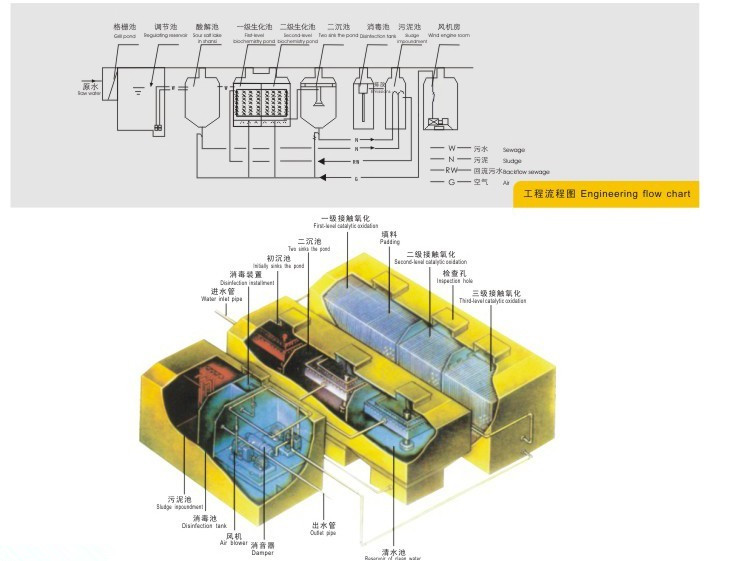 ■2、二級生物接觸氧化處理工藝均采用推流式生物接觸氧化,其處理效果優(yōu)于完全混合式或二級串聯(lián)完全混合式生物接觸氧化池。并比活性污泥池體積小,對水質(zhì)的適應(yīng)性強,耐沖擊負荷性能好,出水水質(zhì)穩(wěn)定,不會產(chǎn)生污泥膨脹。池中采用新型彈性立體填料,比表面積大,微生物易掛膜,脫膜,在同樣有機物負荷條件下,對有機物去除率高,能提高空氣中的氧在水中溶解度。