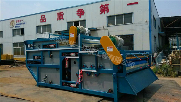1、 洗塑污泥脫水機(jī)是在普通帶式脫水機(jī)的基礎(chǔ)上增加一套預(yù)濃縮脫水段將污泥濃縮與脫水段合于一本的新型過濾設(shè)備。其最為明顯的特征是具有三張濾網(wǎng),一張為濃縮所有,有單獨驅(qū)動和調(diào)節(jié)裝置,以接受污泥的負(fù)荷。