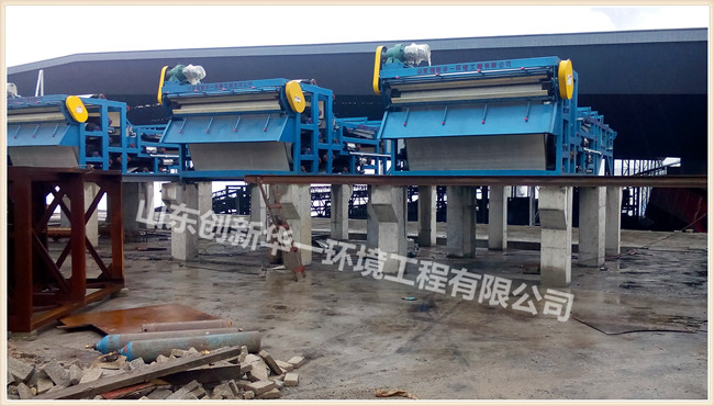 2、由于濃縮階段要接受的水力負(fù)荷很高,而這一階段固體含量又少難以分離和控制,因此濃縮階段是濃縮脫水一體化設(shè)備的技術(shù)關(guān)健。隨著國內(nèi)外對環(huán)保的重視,為了滿足逐步嚴(yán)格的污水排放標(biāo)準(zhǔn),傳統(tǒng)的污泥濃縮池已不再適用于一些特殊污泥的濃縮,如含有大量磷的污泥在重力濃縮池缺氧或壓氧環(huán)境中可能形成磷的二次釋放,使上游脫磷效果喪失殆盡。在這種情況下,濃縮脫水一體機(jī)就應(yīng)運而生。 3、 污泥經(jīng)加藥處理后先送至濃縮段,經(jīng)過幾十秒種濃縮處理后污泥濃度達(dá)到2%-10%以上(視操作要求而定),然后經(jīng)過污泥配料裝置送到壓濾脫水段,然后形成具有一定含固率的泥兒餅。 4、洗塑污泥脫水機(jī)的濃縮過程如下:污泥進(jìn)入濃縮段時被均勻攤鋪在濾布上,好似一層薄薄的泥層,在重力作用下泥層中污泥的表面水大量分離并通過濾布空隙迅速排走,而污泥固體顆粒則被截留在濾布上。此時污泥中固體的截留率是很高的,隨著濾布的行走,進(jìn)一步脫去一部分水分,并且相粘結(jié)形成流動性較差的漿狀污泥。由于污泥流動性差,進(jìn)入后續(xù)壓濾機(jī)的高壓剪切段后不容易被擠出來,因此脫水效果得到保證,最終泥餅的含固率提高很明顯。