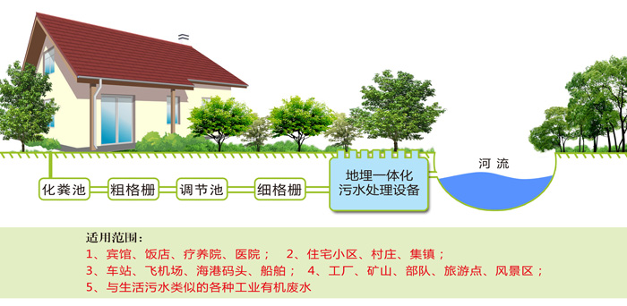 1、社區(qū)污水處理設(shè)備埋設(shè)于地表以下,設(shè)備上面的地表可作為綠化或其他用地,不需要建房及采暖、保溫。處理設(shè)備一般用碳鋼和玻璃鋼制作,并進(jìn)行防腐處理。
