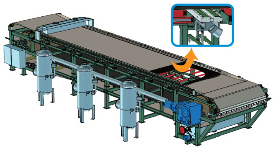 7、設(shè)有可調(diào)濾布反沖洗裝置,可以根據(jù)物料的特性調(diào)整反沖洗壓力,保證濾布的脫水效果,采用排液系統(tǒng),可適合絕大部分工況條件下使用。